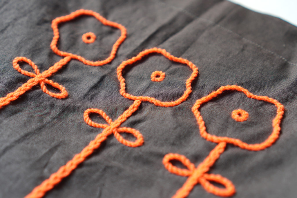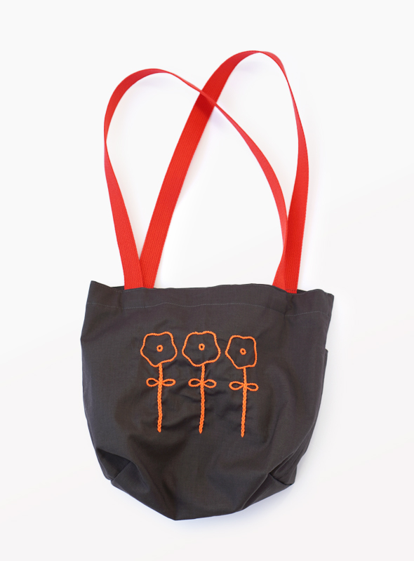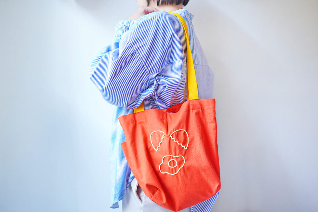 遊び心満点の蛍光アクリル毛糸刺繍。ひと針ごとに丁寧に施された手のあたたかみが、バッグに表情と個性をプラスします。