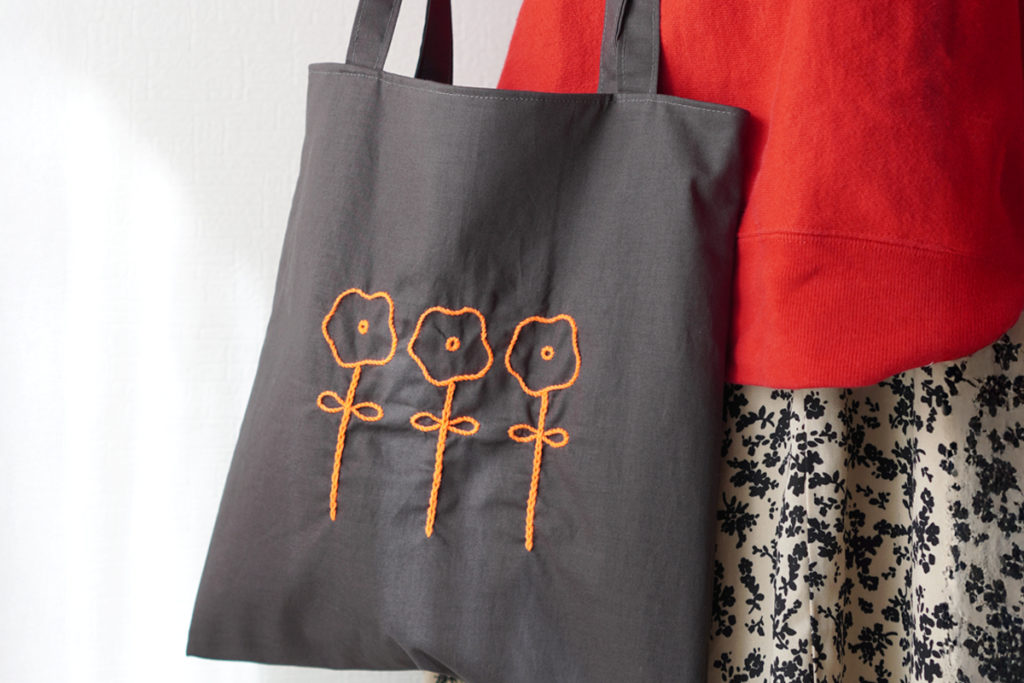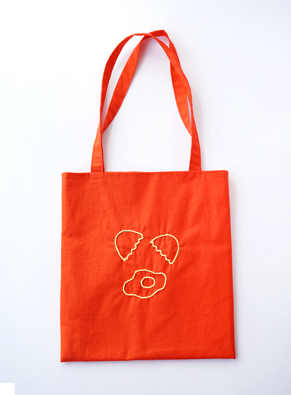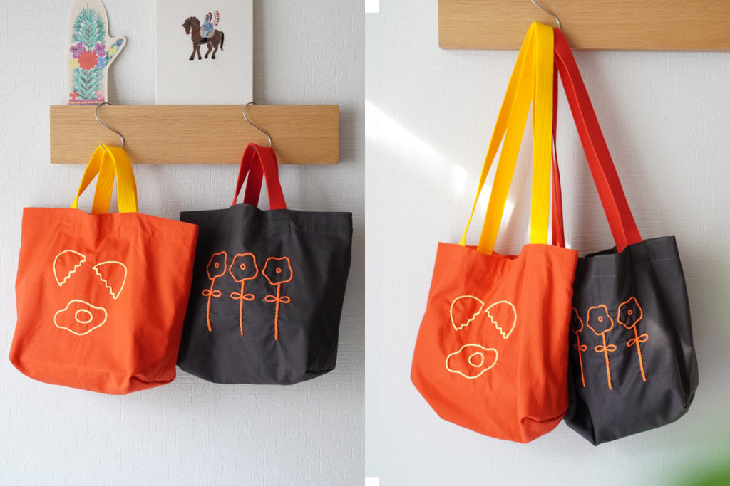 ビビッドなビタミンカラーが視線をキャッチ!蛍光アクリル毛糸のさりげない刺繍が、持つだけで気分をパッと明るくしてくれるハッピーなトート