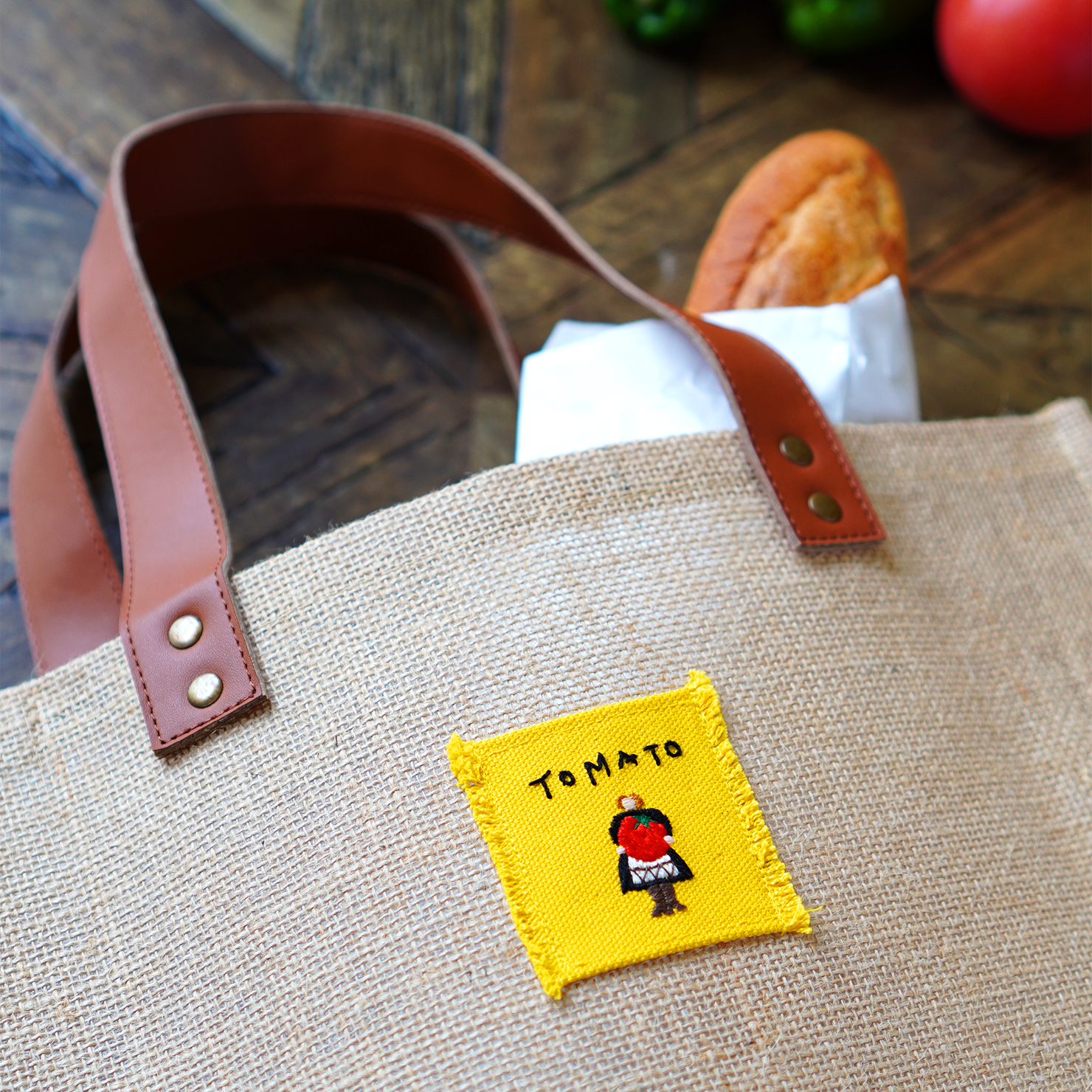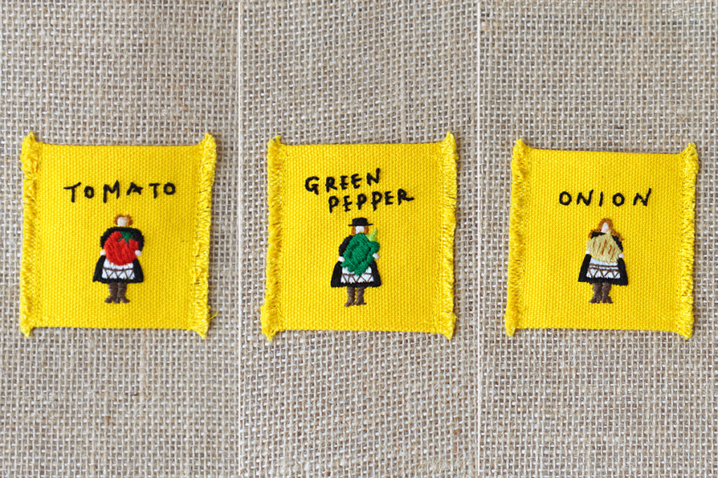 陽気でたくましい“ママン”の刺繍は、トマト・ピーマン・玉ねぎの3種から選べる個性派デザイン。それぞれ元気カラーで見るだけでほっこり元気に。