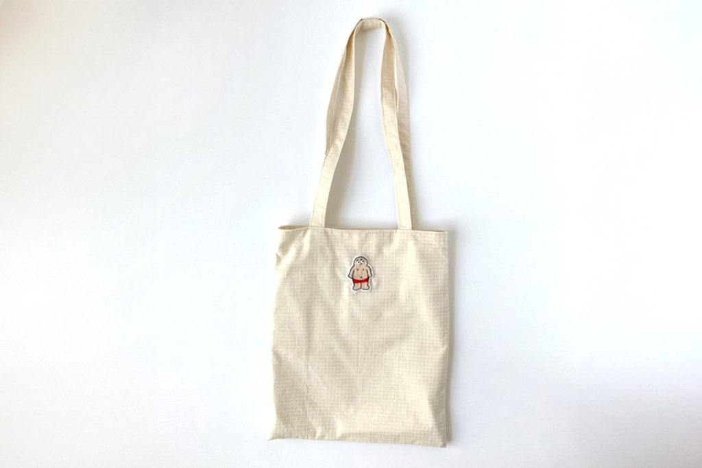 困り顔の“おじさん”がそっと目に入る、手刺繍入りフラットトート。ナチュラルな綿素材に仕上げられた、気軽に持てるA4サイズ対応バッグです。