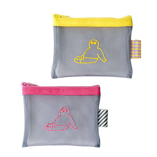 手のひらサイズに“ふとっちょおじさん”がどーん!グレー×ビビッドカラーでポップにきまる、メッシュのミニポーチ。